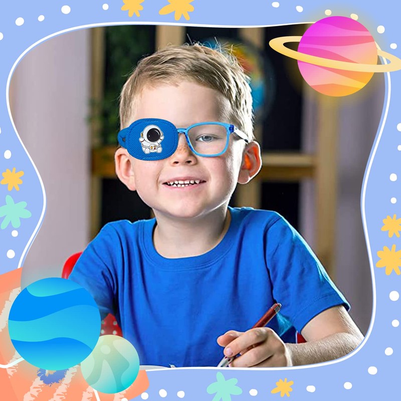 6PCS Eye Patch for Kids Girls Boys Colorful & Soft Eye Patch for Glasses Lazy Eye Patches for Left or Right Eyes More Styles (to Cover Right Eye, Blue-Astronaut)