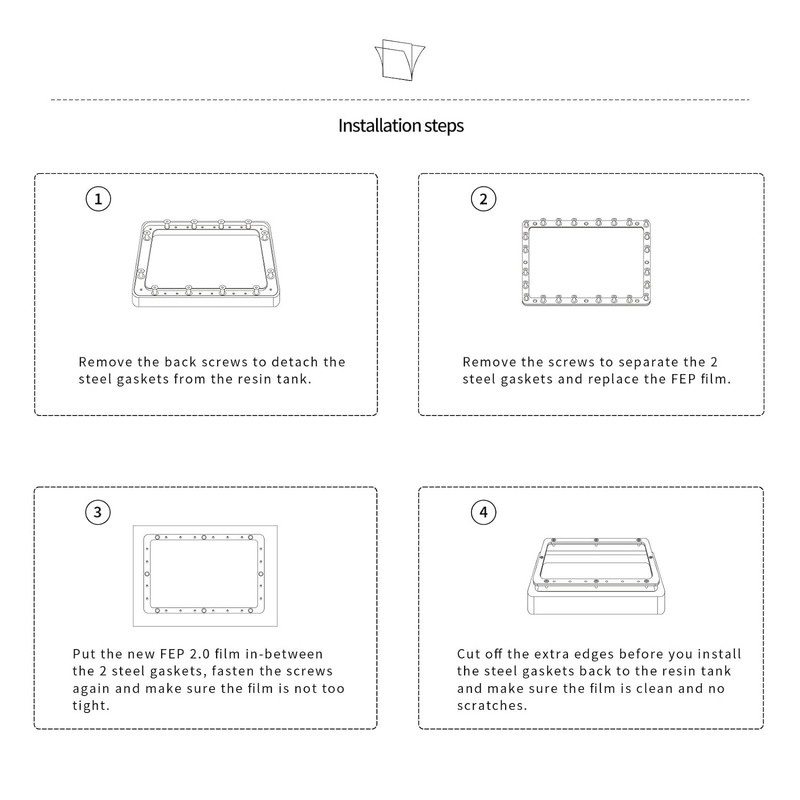 - Package include : 140x200x0.15mm FEP Film - 6 Pcs, 3D Printer Vat Lid - 2Pcs.