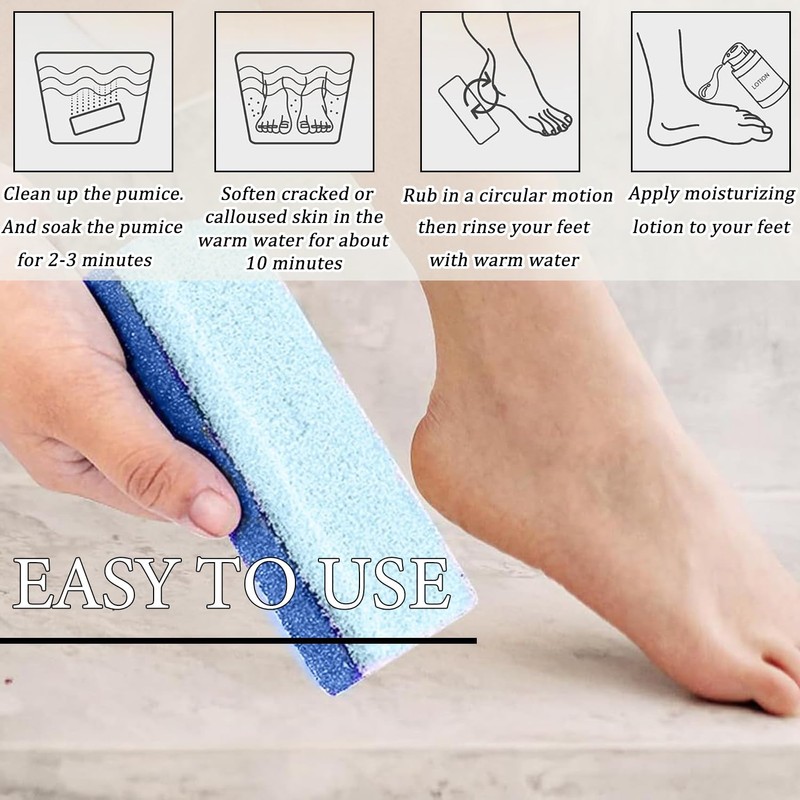 - Easy to Use:Our pumice stone are easy to use,before use you can soak the calluses in warm water until soft,wet the pumice stone sponge and gently rub your skin in a circular motion until the dead skin is removed.Using our pumice stone is safer than using blades or chips to remove calluses.