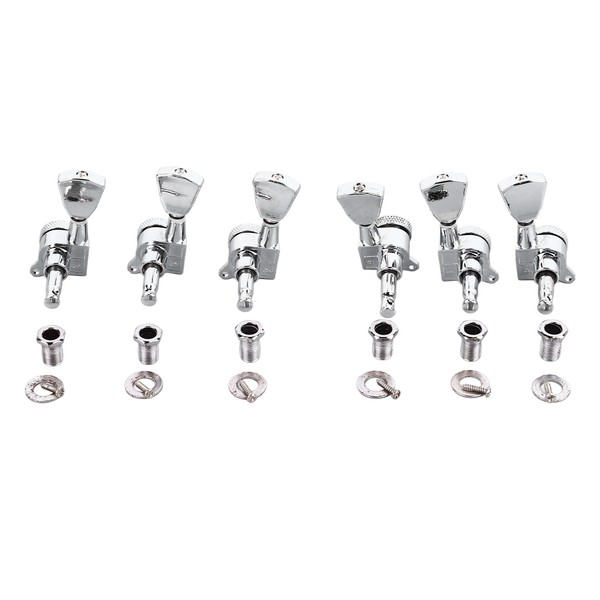 6PCS Guitar Locking Tuners Triangular Head String Tuning Key Pegs Machine Heads Replacement 3 Right 3 Left GC402 Silver