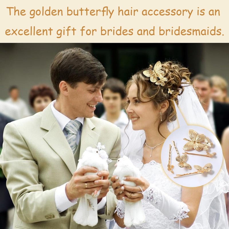 - A great gift: Golden butterfly hair accessories are an excellent gift for brides and bridesmaids. Butterfly hair accessories will add more charm to your clothes and make you more gorgeous.