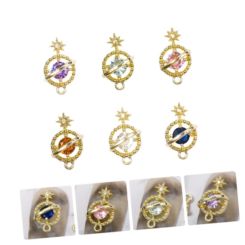 6pcs Nail Planet Zircon Nail Ornament Metal Nail Art Rhinestone Nail Charms Chic Nail DIY Decors DIY Patch Decoration Nail Sticker Nail Decorations Nail Decal Alloy Manicure 3D Gem