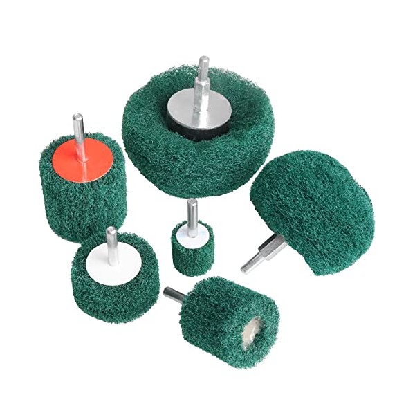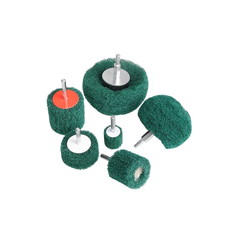 6PCS Non Woven Abrasive Buffing Polishing Wheel Drill Attachment Set,Scouring Pads Power Scrubber Cleaning Kit (Green)