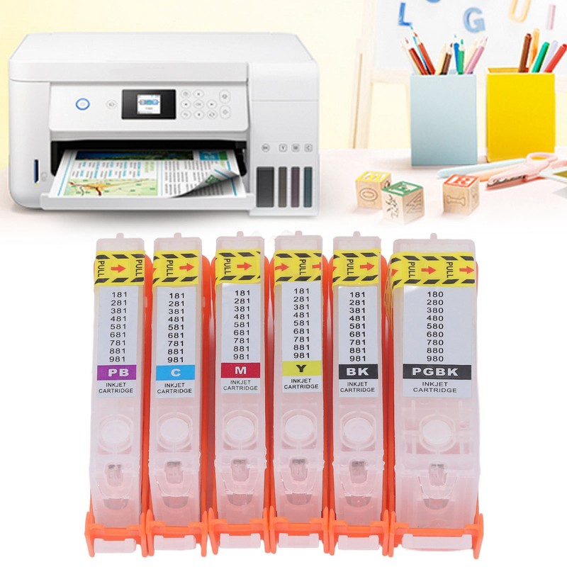 6Pcs Printer Ink Cartridge with Permanent Chip Eco Friendly 6 Color Refill Ink Cartridge Set 380 381