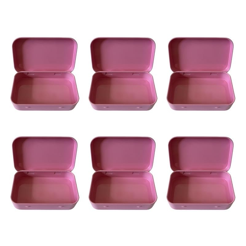 6PCS Rectangular Tin Boxes with Lids,Pink Metal Empty Hinged Tins Containers For Home Storage Organizer,9.5cm*6cm*2.2cm