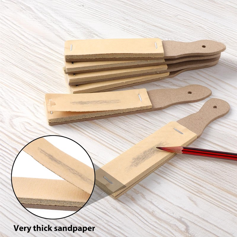 - CONVENIENT TO USE: The crayons sharpener the handle is ergonomically designed for easy grip, The drafting sandpaper comes with 12 sheets per board, When you use up a piece of sandpaper, just tear it off, and then use the another one, saving your time and energy. The hole in the charcoal sharpener handle makes it easy to hang.