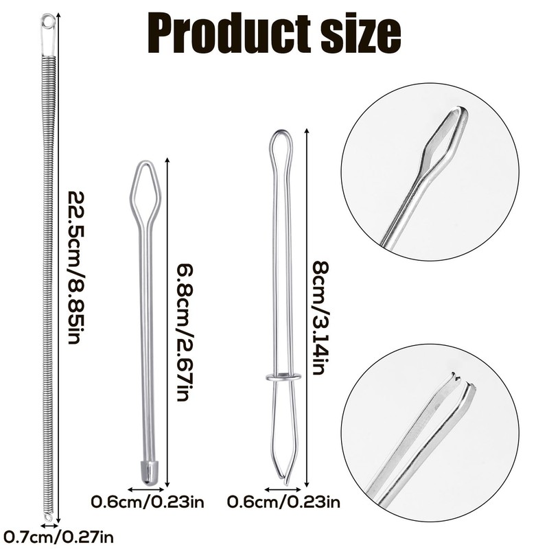 - Product Size: The open-end drawstring clip: 8x0.6x0.6cm/3.14x0.23x0.23in, the closed-end drawstring clip: 6.8x0.6x0.6cm/2.67x0.23x0.23in, the elastic threader: 22.5x0.7x0.7cm/8.85x0.27x0.27in.