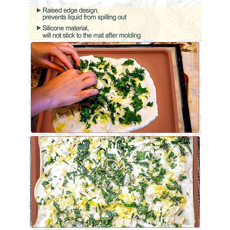 2. Fit 12" x 13" metal trays and the size of the metal tray cannot be smaller than that of the silicone mats.