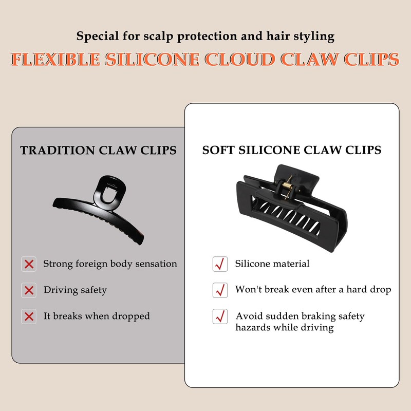 - Hair Friendly Design: These soft hair clips feature rounded teeth and smooth silicone edges that minimize tugging and tangling. Our silicone hair clips reduce stress on strands and scalps without snagging or breakage