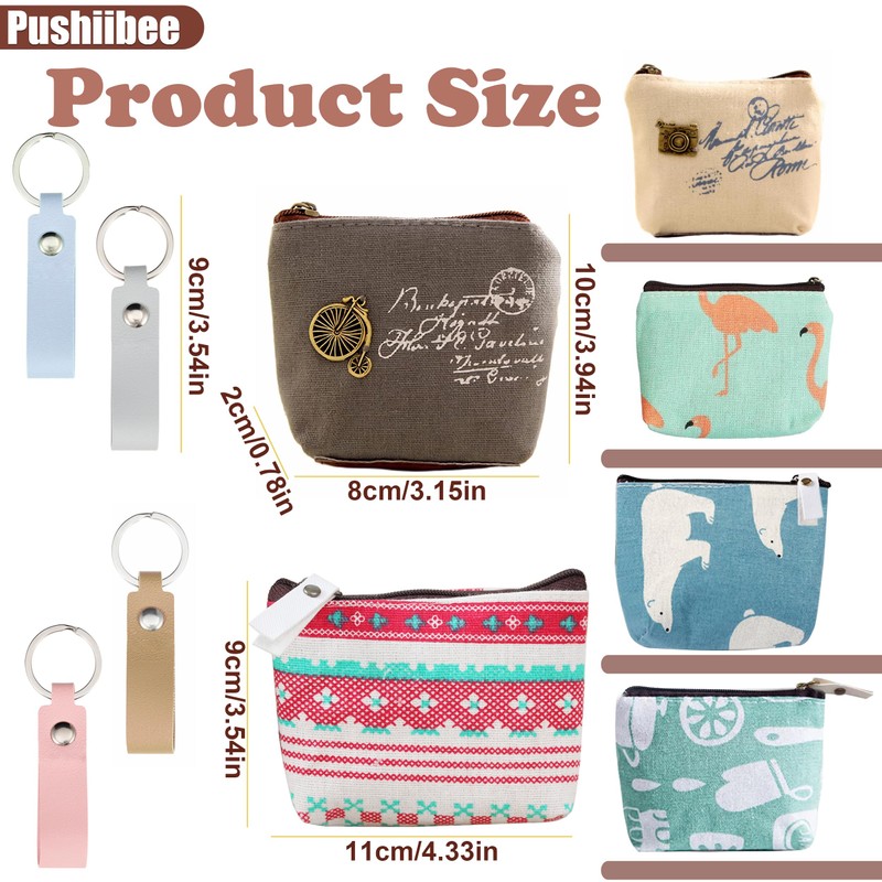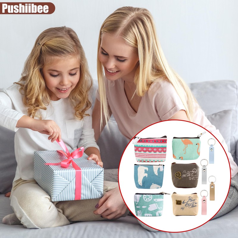 6 Styles Canvas Small Coin Pouch with Keychain Fashion Mini Makeup Bag with Zipper Design for Key Jewelry