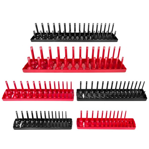 - FAST TO RECOGNIZE – Each posts marked with clear socket sizes for instant identification to save your time. Red SAE and black Metric socket tray make it easy to distinguish when they mixed