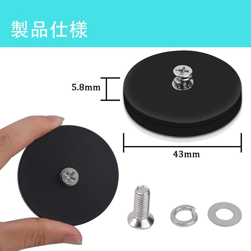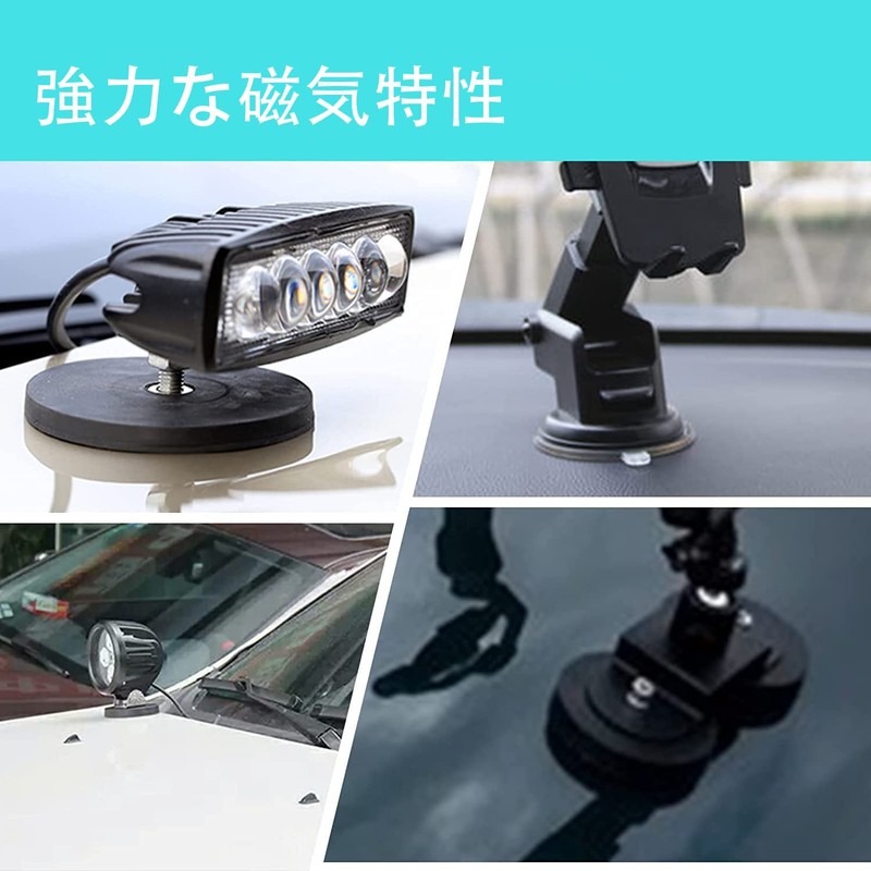 6pcs Super Strong Neodymium Magnets 43mm Anti Scratch Base Magnet Rubber Coating Strong Magnets with M4 Screws Studs Neodymium Magnet Base Tool LED Work Light Car Mount Camera