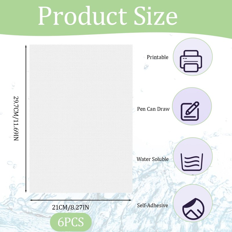 - Product Includes: 6 Sheets of water soluble embroidery paper, measuring approximately 8.27 inches x 11.69 inches, meet the needs of multiple embroidery, suitable for DIY enthusiasts, clothing designers and cross-stitch, patchwork embroideryenthusiasts