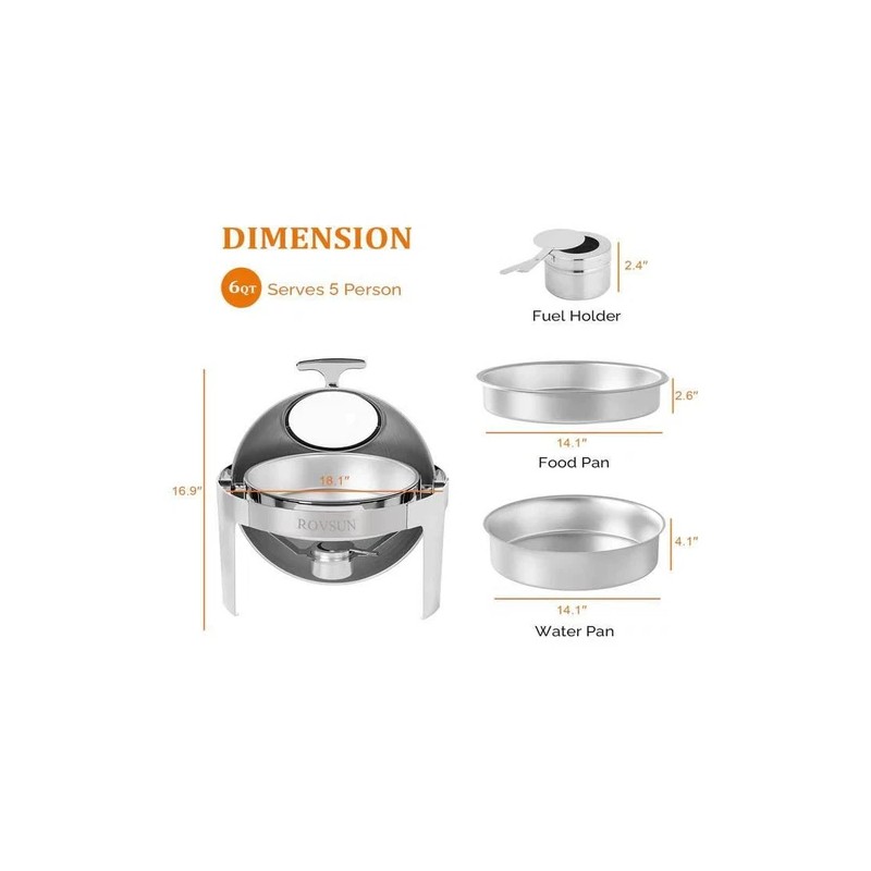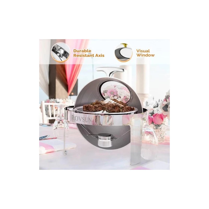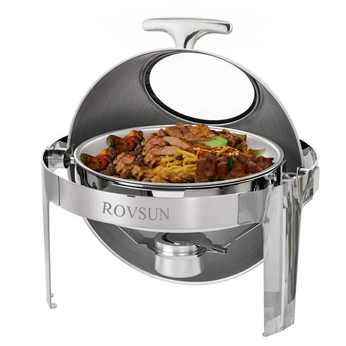 6Qt Round Roll Top Chafing Dish Buffet Set with Convenient Handle / Fuel Holder