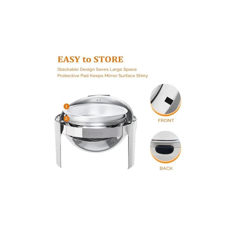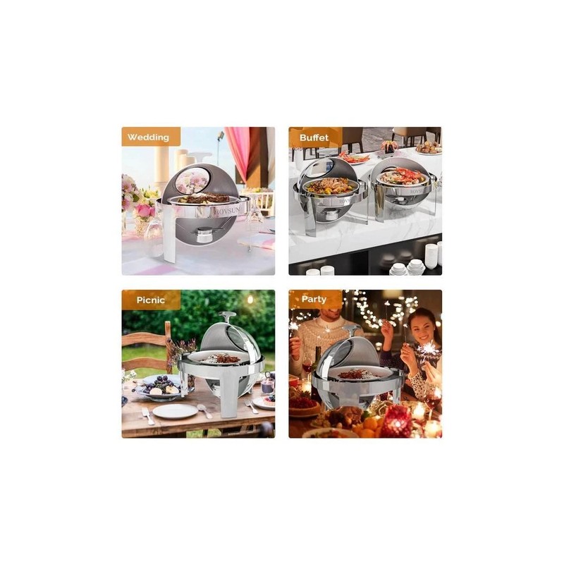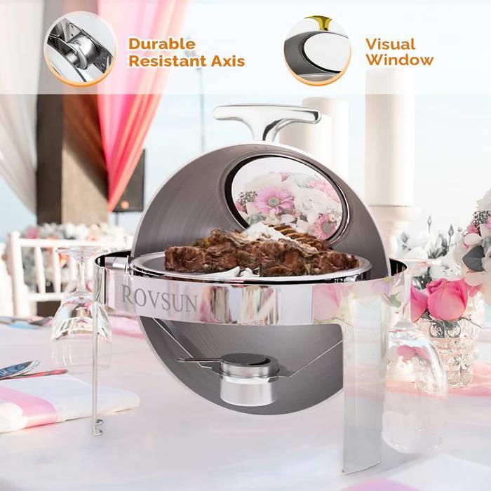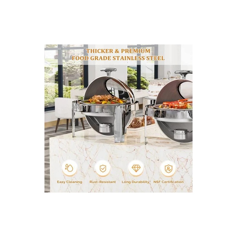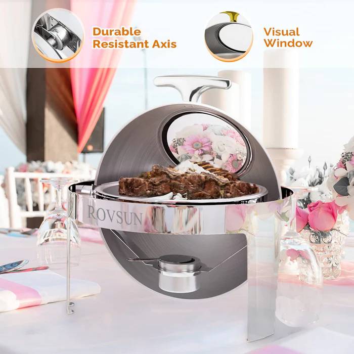 The roll top chafing dish is perfect for buffets, hotel breakfast and brunch areas, wedding, parties, banquets and any events.