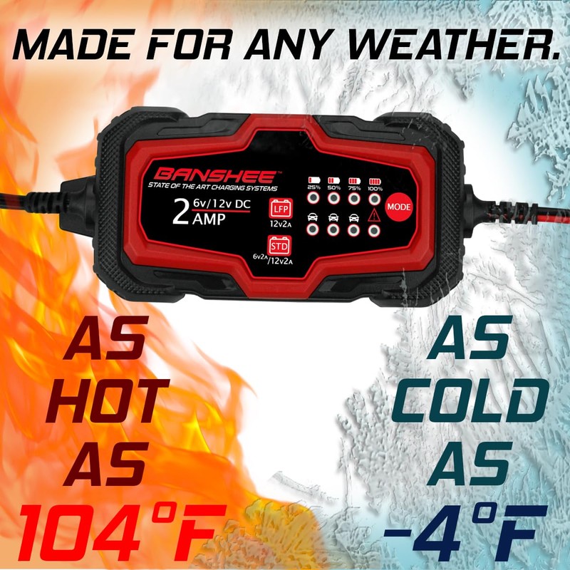 - Our 2 Amp Trickle Charger is versatile, compatible with LiFePO4 & Lead Acid batteries (AGM, gel, VRLA, SLA, wet cell- Any and all Lead Acid Batteries). It efficiently charges and maintains 4-120 Ah batteries for cars, motorcycles, ATVs, RVs, boats, scooters, golf carts, lawn mowers, ride-on toys, and more!