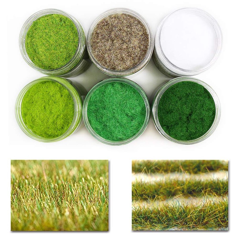 6X 35g Mixed 2mm-3mm Static Grass Terrain Powder Green Fake Grass Fairy Garden Miniatures Landscape Artificial Sand Table Model Railway Layout CFA5