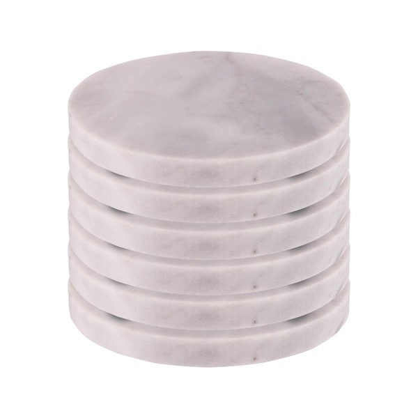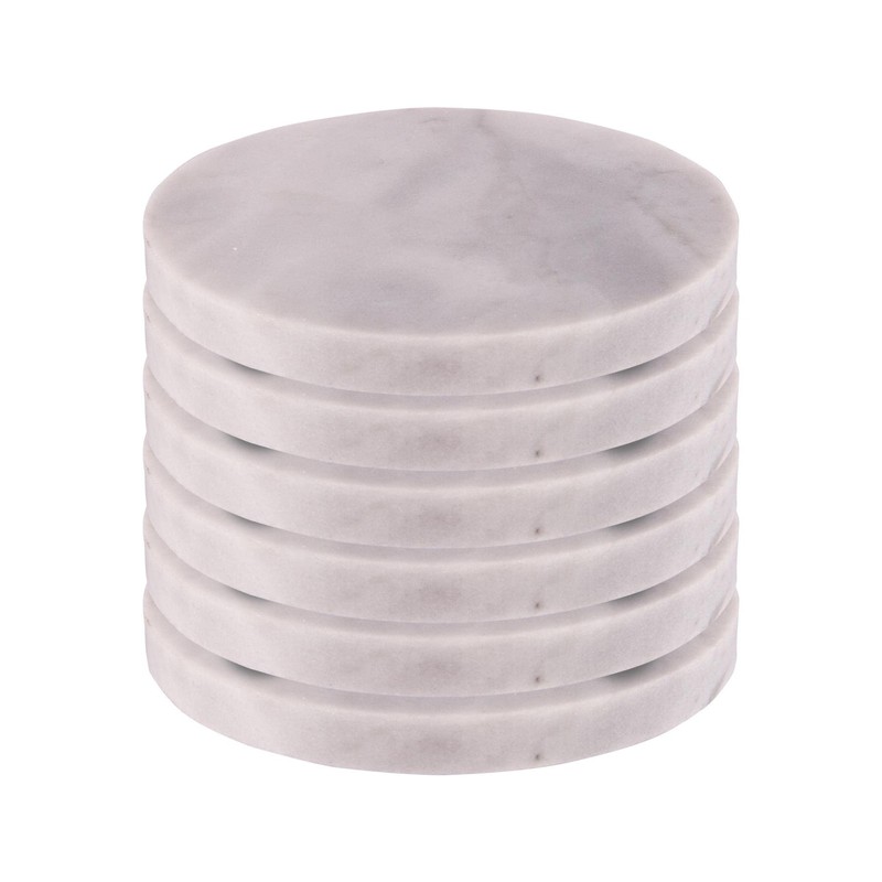 • Add some rustic chic to your home dining, desk or coffee table with this set of 6 White Round Marble Coasters from Argon Tableware.