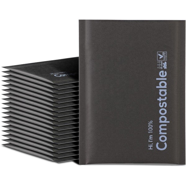 6x10 100% Biodegradable Bubble Mailers,25 Count Kraft Black #000 Compostable Padded Packaging Wrap Envelopes Pouches Eco Friendly Self Seal Bags