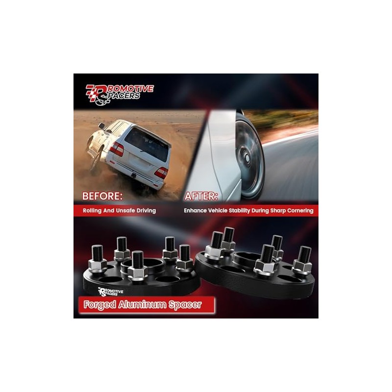 - 【Advanced Innovative Process】PROMOTIVE SPACERS Active cooling wheel spacer,featuring a cutting-edge design for efficient heat dissipation.Each spacer is forged from premium anodized 6061-T6 aluminum alloy and frosted for frosted for greater scratch and abrasion resistance.Grade 10.9 carbon steel studs for added strength and security against loosening.Utilizing 0.02mm high-precision CNC technology, Hubcentric forged spacer ensure a perfect fit every time for optimal performance.