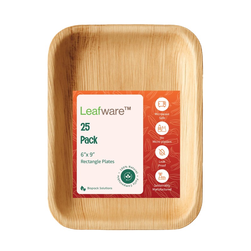 Upgrade your tableware with Leafware 6x9 Inch Rectangular Areca Palm Leaf Plates – a premium eco-friendly alternative to disposable plastic or paper plates. Crafted from naturally fallen Areca palm leaves, these plates are 100% compostable, biodegradable, and plastic-free, helping you reduce waste without sacrificing quality or style.