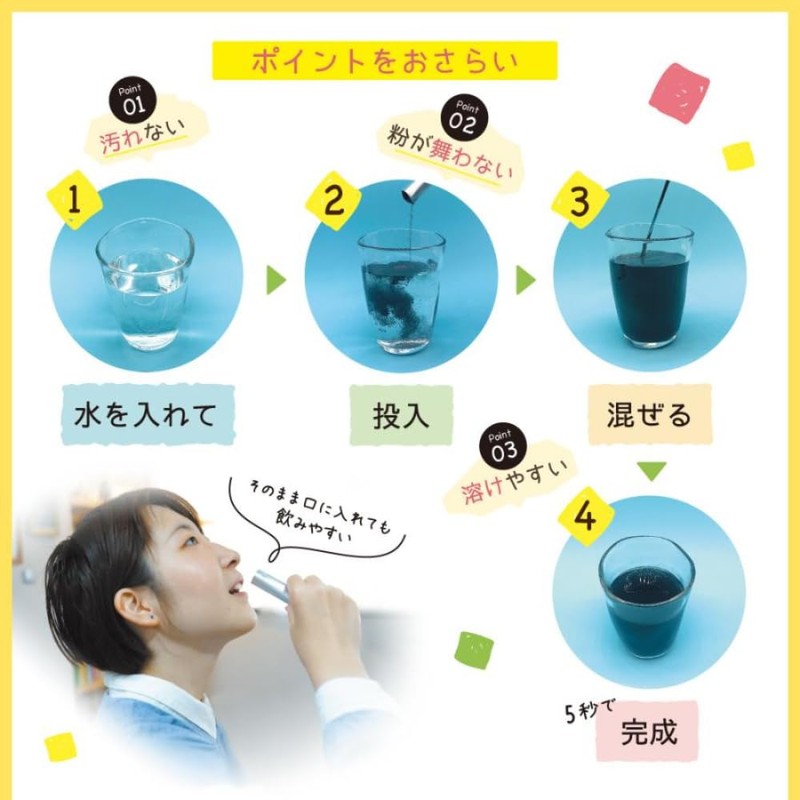 - 【溶けやすい!】粒子が細かすぎて飲み物に浮きがちだったパウダーよりもサッと溶けやすくなりました。個包装なので、お料理やお飲み物に混ぜる際も簡単に投入できて便利になりました。