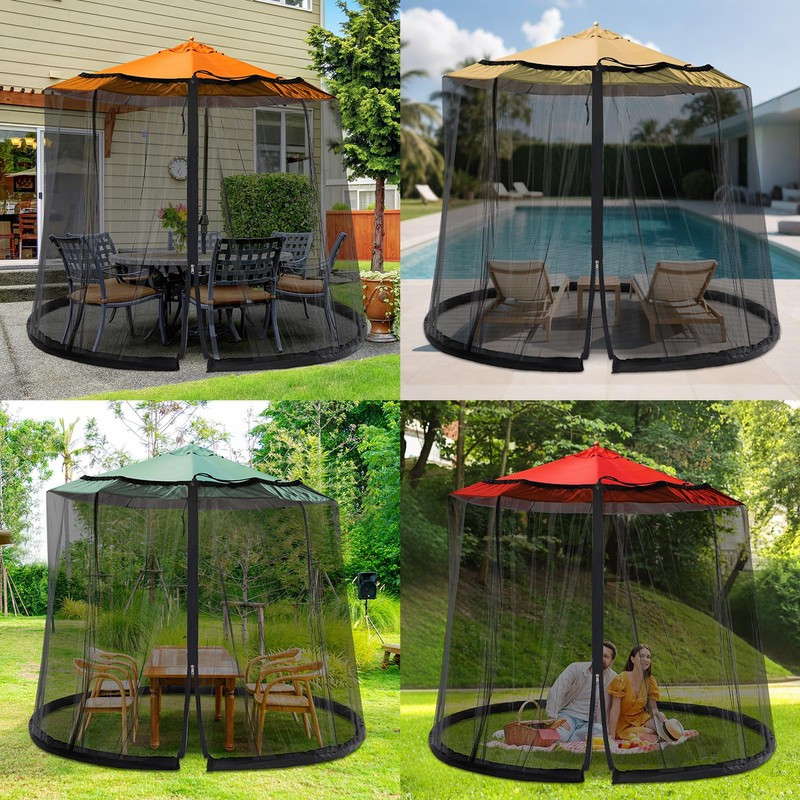7.5-13FT Mosquito net for Patio - Patio Mosquito Netting with Zipper and Adjustable Cord,Umbrella Netting for Outdoor Umbrellas