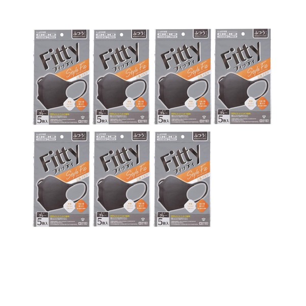 [タマガワエーザイ] 7個セット フィッティ スタイルフィット立体 5枚入り ダークグレー ふつうサイズ マスク