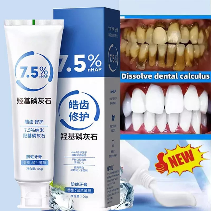 ✅ 7.5% Hydroxyapatite – Targets yellow stains and restores tooth enamel naturally.