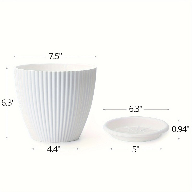 7.5-Inch Flower Pots Set of 5 with Drainage Holes and Saucer for Outdoors White