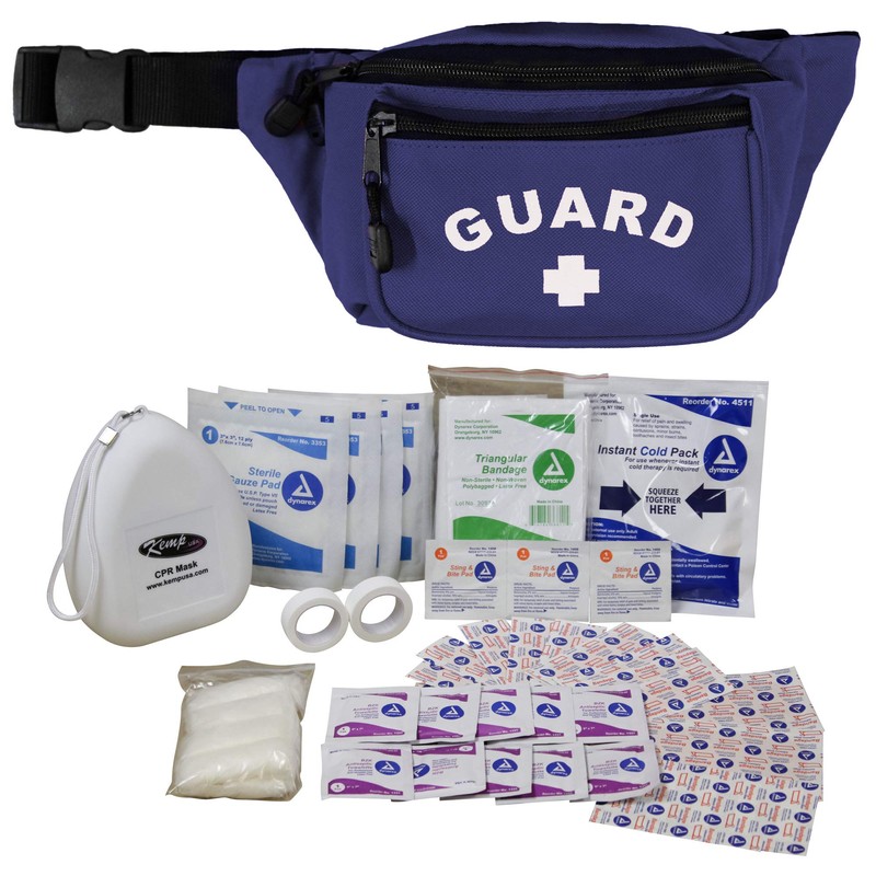 7.50" Navy Blue and White Standard First Aid Kit and Hip Pack