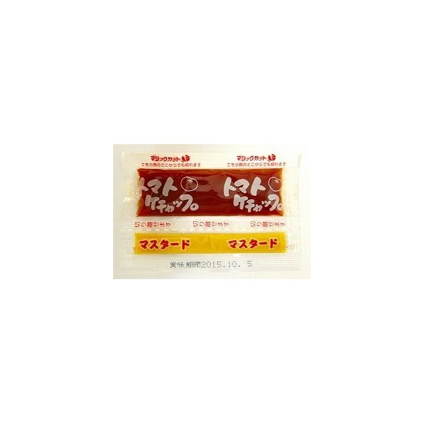 - 原材料:トマトケチャップ:トマト(輸入)、果糖ぶどう糖液糖、醸造酢、食塩、たまねぎ、香辛料マスタード:醸造酢、マスタード、還元水あめ、食塩、オニオンエキス、香辛料/酒精、着色料(ウコン)、増粘多糖類、(一部にりんごを含む)