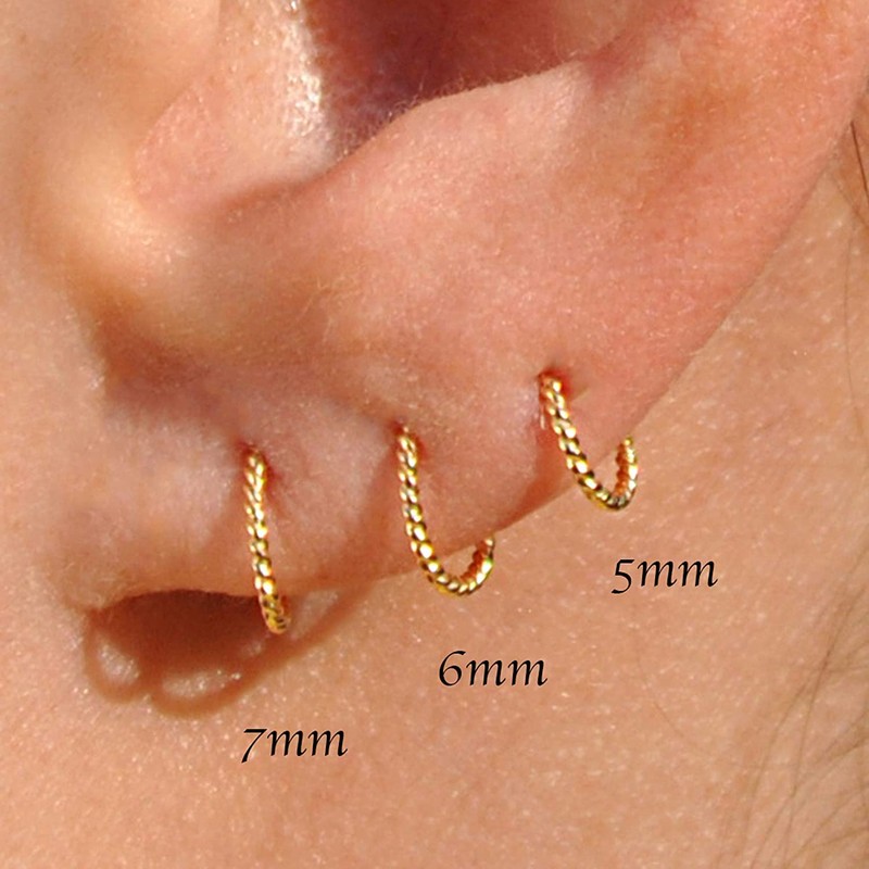 7.5mm 20 GA Hoop Piercing 14K Twisted Rose Gold Filled 20 GA Eyebrow Septum Huggie Cartilage Nose Tragus Earrings (7.5mm | 20 GA, 14K Rose Gold Filled | Twisted Wire)