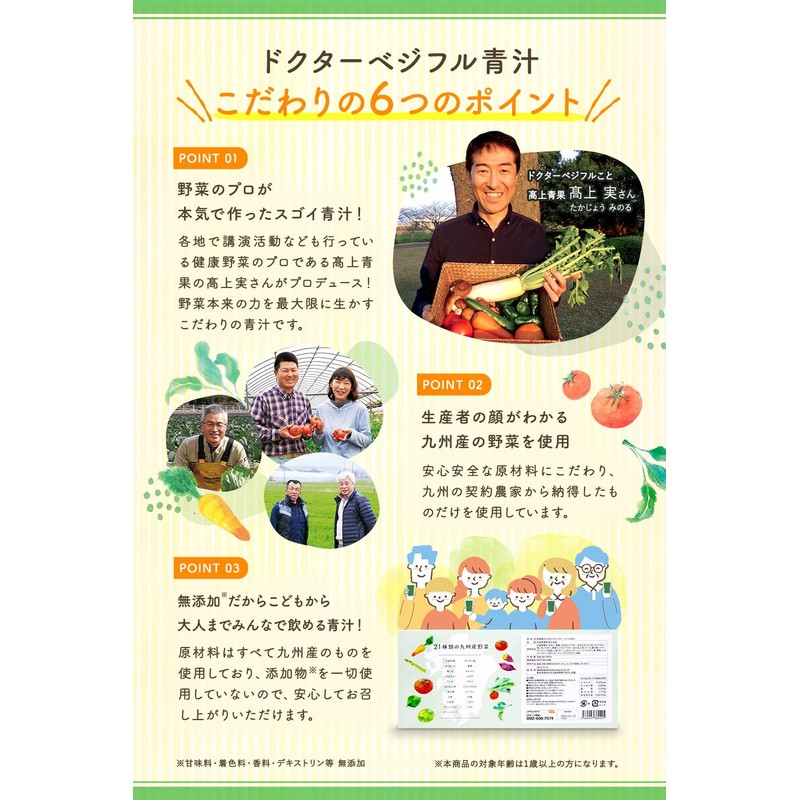 - ✅内容量21g(3g×7包) 安心の九州産野菜を100%使用! 甘味料、着色剤、保存料、香料不使用 野菜は信頼のおける契約農家のものを厳選。本商品の対象年齢は1歳以上の方になります。