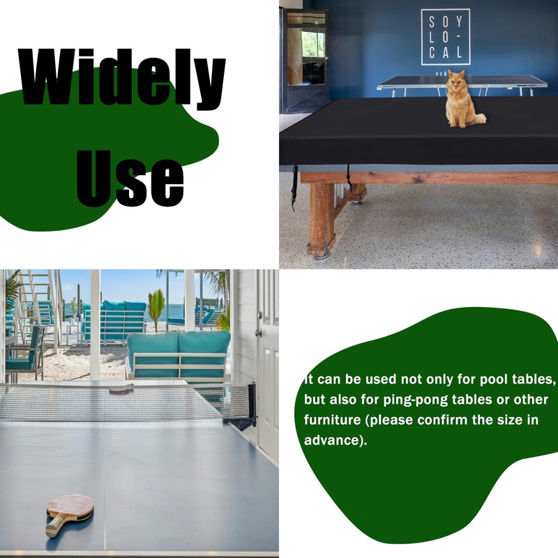 - 【Wide Use】: This dust cover for billiard table as pool table accessories can not only be used for pool tables, but also for other furniture. The 9-foot one can be used for table tennis tables. Please confirm the size of your table before placing an order.