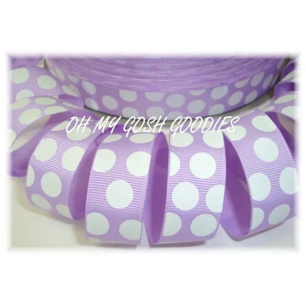 7/8 LIGHT ORCHID WHITE PRINCESS CLASSIC JUMBO DOTS EASTER GROSGRAIN RIBBON