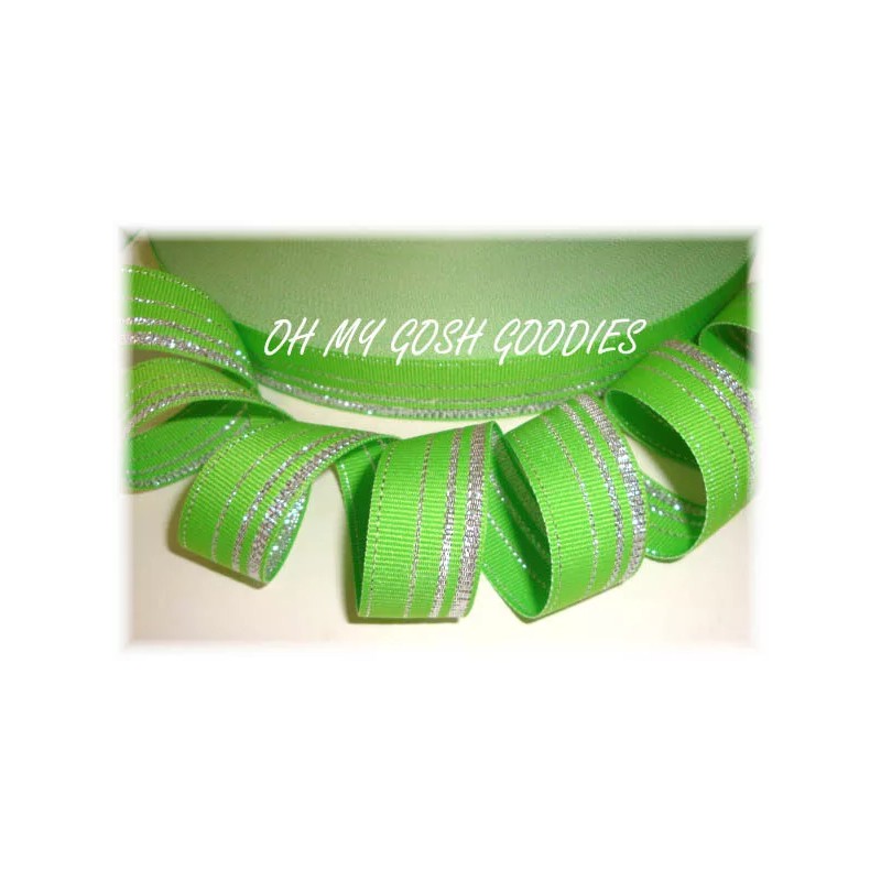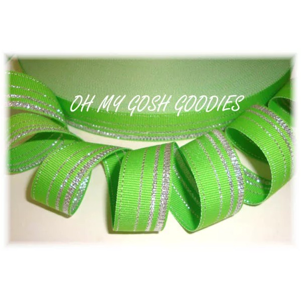7/8 PRINCESS LIME GLITZ SPARKLE SILVER GROSGRAIN RIBBON