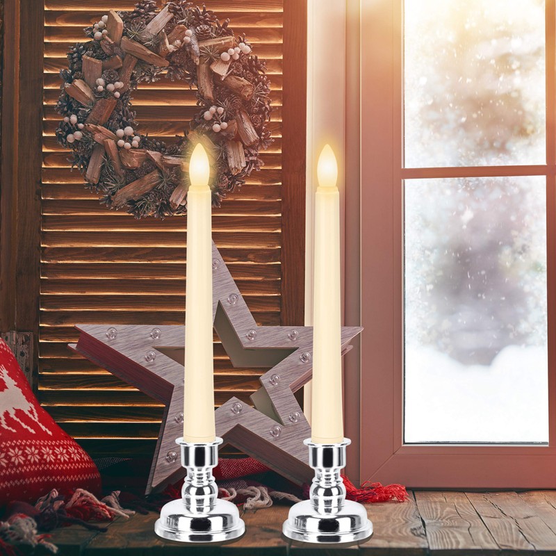 - ❀Package list and sales support: Each package include 4 PCS Ivory taper window candles(0.8”D x 7.9”H), 4 Sliver candlestick(2.36" D x 2.36" H), 4 suction cups, 1 remote control and 1 user's manual. If you have any questions, please let us know, we will give you a satisfaction answer as soon as possible.
