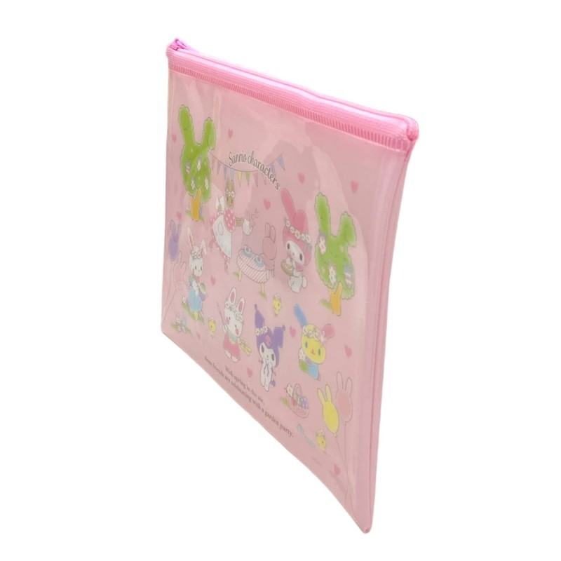 フレンド サンリオ キャラクターズ アクセサリー コスメ フラット ビニール ポーチ ファスナー ケース バッグ 7.9インチ(幅)×5.5インチ(高さ)×0.4インチ(奥行き)(スプリングガーデン), ピンク, Size: About 7.9 in (W) × 5.5 in (H) × 0.4 in (D), コスメポーチ