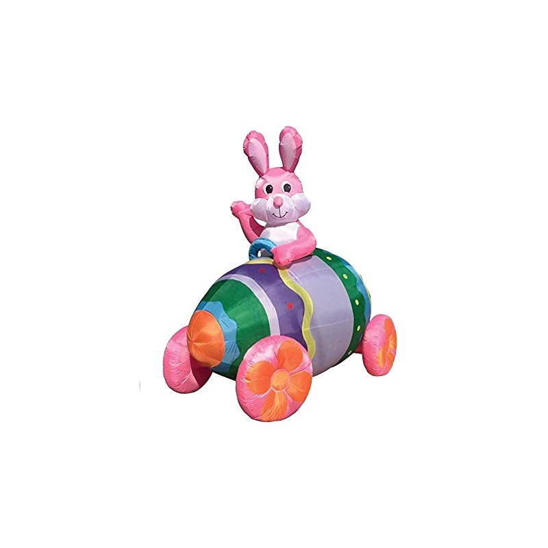 7' Air Blown Inflatable Easter Pink Bunny Egg Car w/Big Wheels Yard Decoration