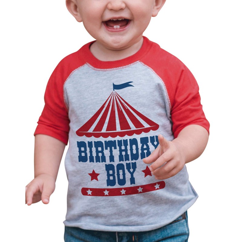 7 ate 9 Apparel Boy's Birthday Circus Red Raglan