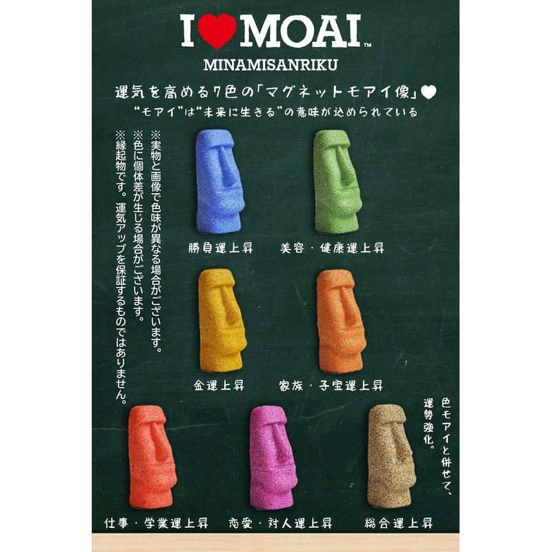• Magnetic Moai statue is a blend of sand from Southern Sanriku, San Ole Sodeha and Tottori Sand dunes (outside the National Park). The manufacturing method is handmade, and each piece is carefully and hardened. Sandy and will not rot or degrade