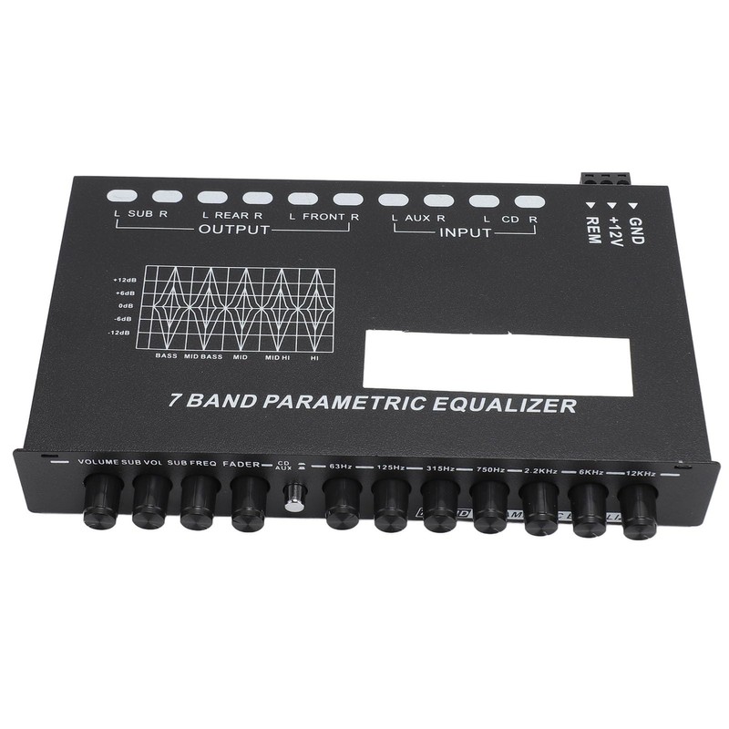 - Adjustable: The car sound equalizer features 7 equalization bands (50Hz, 125Hz, 315Hz, 750Hz, 2.2kHz, 6kHz, and 12kHz) that are adjustable from ‑12 to + 12db. Subwoofer frequency adjustable from 50Hz to 130Hz.
