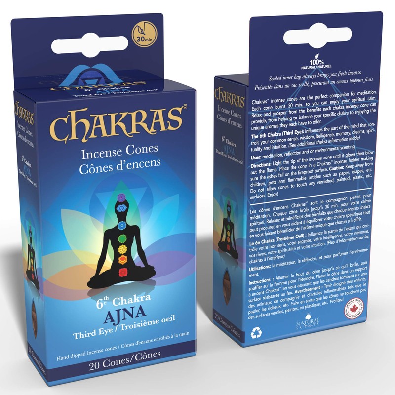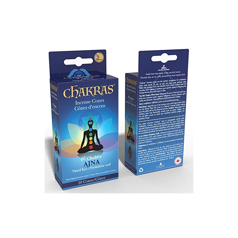 7 Chakras Natural Meditation Incense Cones - Third Eye Chakra 20x 30 Minute Cones - Hand Dipped - Also Perfect for Reiki, Yoga, Healing & Aromatherapy