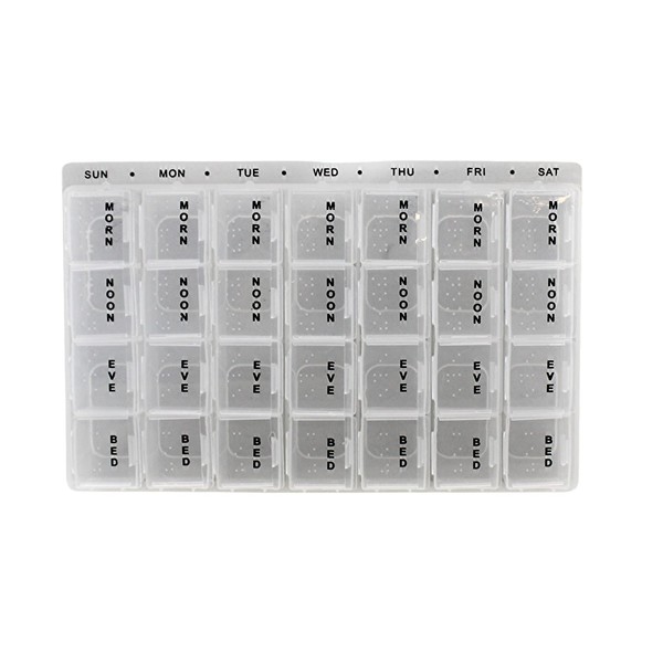 7-Day Pill Box Organizer 4 Times A Day Morning Noon and Night Bed Medi Planner