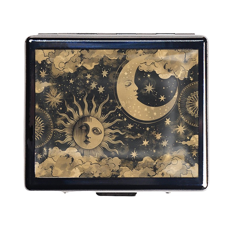 7 Days Chromed Shiny Silver Pill Organizer with Mirror Inside Has 8 Separate Compartments Rectangle 7 Days Pill Box Pill Case (Sun and Moon)