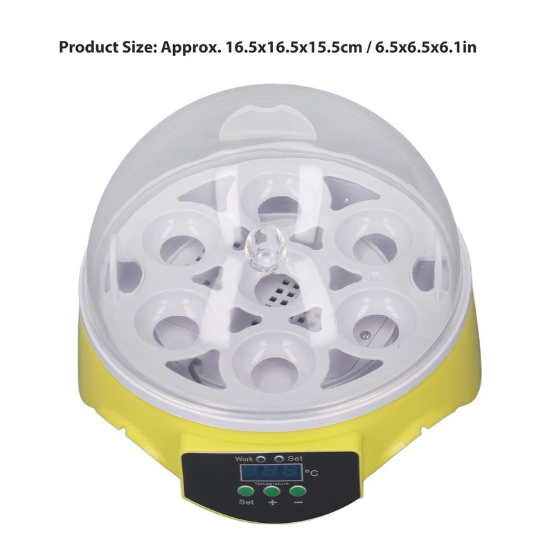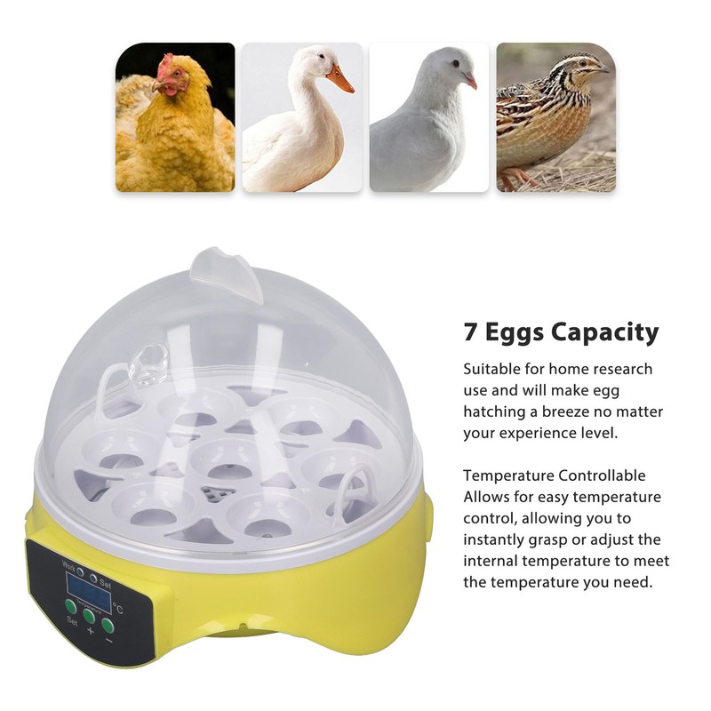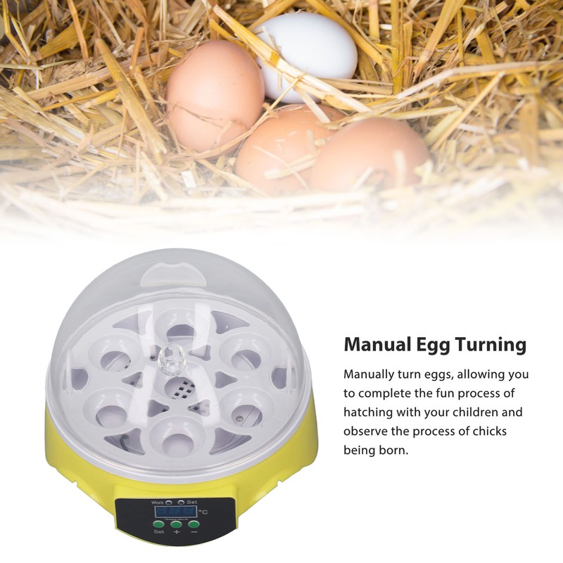 1、Temperature Controllable: Egg incubator allows for easy temperature control, allowing you to instantly grasp or adjust the internal temperature to meet the temperature you need. 2、Easy to Use: Incubators for chicken eggs is small in size, light in weight, easy to operate, durable, has good thermal insulation and energy saving performance, and has reasonable heat circulation to provide the best guard for hatching. 3、360° Full Visibility: Chicken incubator breaks away from traditional constraints and is designed in a visual style that can be viewed 360 degrees, allowing people to see the entire incubation process. 4、Manual Egg Turning: Egg incubator is set to manually turn eggs, allowing you to complete the fun process of hatching with your children and observe the process of chicks being born. 5、7 Eggs Capacity: Egg Incubator is suitable for home research use and will make egg hatching a breeze no matter your experience level.