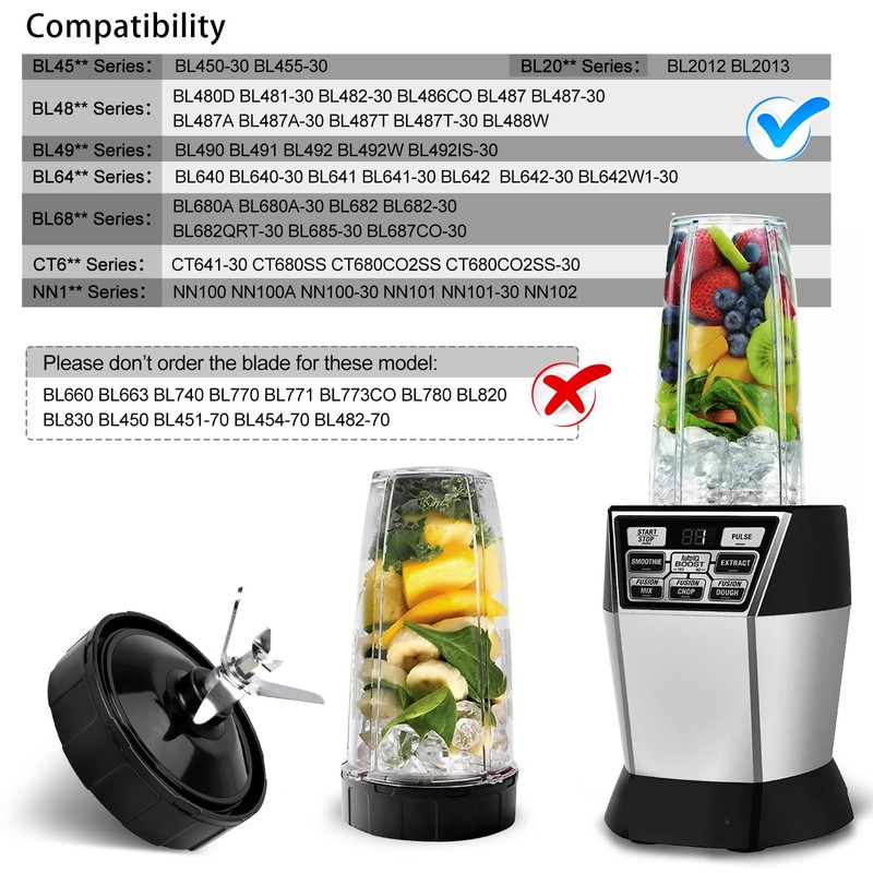 - COMPATIBILITY: Our 7 fins ninja replacement blades apply to BL450-30, BL455-30, BL480D, BL481-30, BL482-30, BL486CO, BL487, BL487-30, BL487A, BL487A-30, BL487T, BL487T-30, BL488W, BL490, BL491, BL492, BL492W, BL492IS-30, BL640, BL640-30, BL641, BL641-30, BL642, BL642-30, BL642W1-30, BL680A, BL680A-30, BL682, BL682-30,BL682QRT-30, BL685-30, BL2012, BL2013, CT641-30, CT680SS, CT680CO2SS, CT680CO2SS-30, BL687CO-30, NN100, NN100A, NN100-30, NN101, NN101-30, NN102(Only fit for 18oz, 24oz, 32oz cups not fit for 16oz)