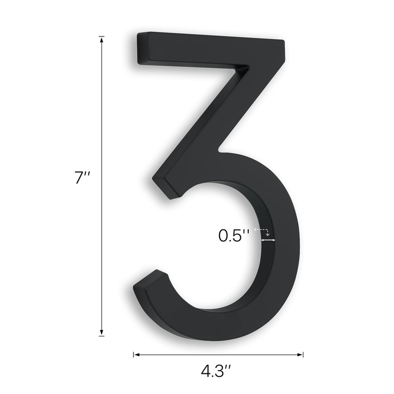 7 Inch Modern House Numbers outside,Street Metal Black Large House Numbers Door Numbers For House Address Numbers For House Numbers For Address On House Floating Flush Mount Zinc Alloy Black Number 3