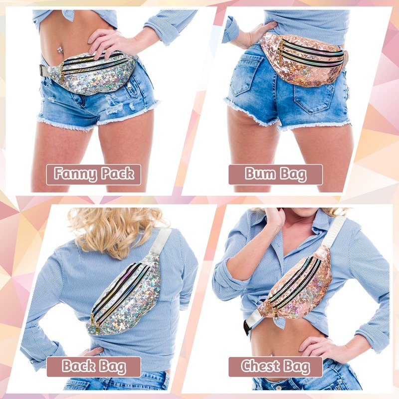 The glitter waist bag is nice for beach, party, concerts, barbecues, festivals, running and other outdoor activities, you can also choose it as gift for your friends and family members